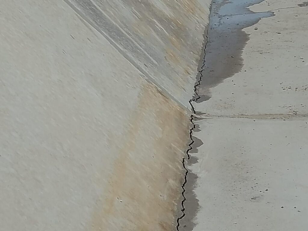 En el Informe de Hito N° 1858-2025-CG/GRSM-SCC se detalla que algunos tramos del canal principal y sus caídas inclinadas muestran fisuras, grietas, segregación, vacíos y cangrejeras en los muros de concreto. Estas deficiencias podrían comprometer la impermeabilización, resistencia estructural y eficiencia en la conducción del agua, además de poner en riesgo el funcionamiento de la infraestructura de riego y generar una consecuencia adversa de S/ 441 641.