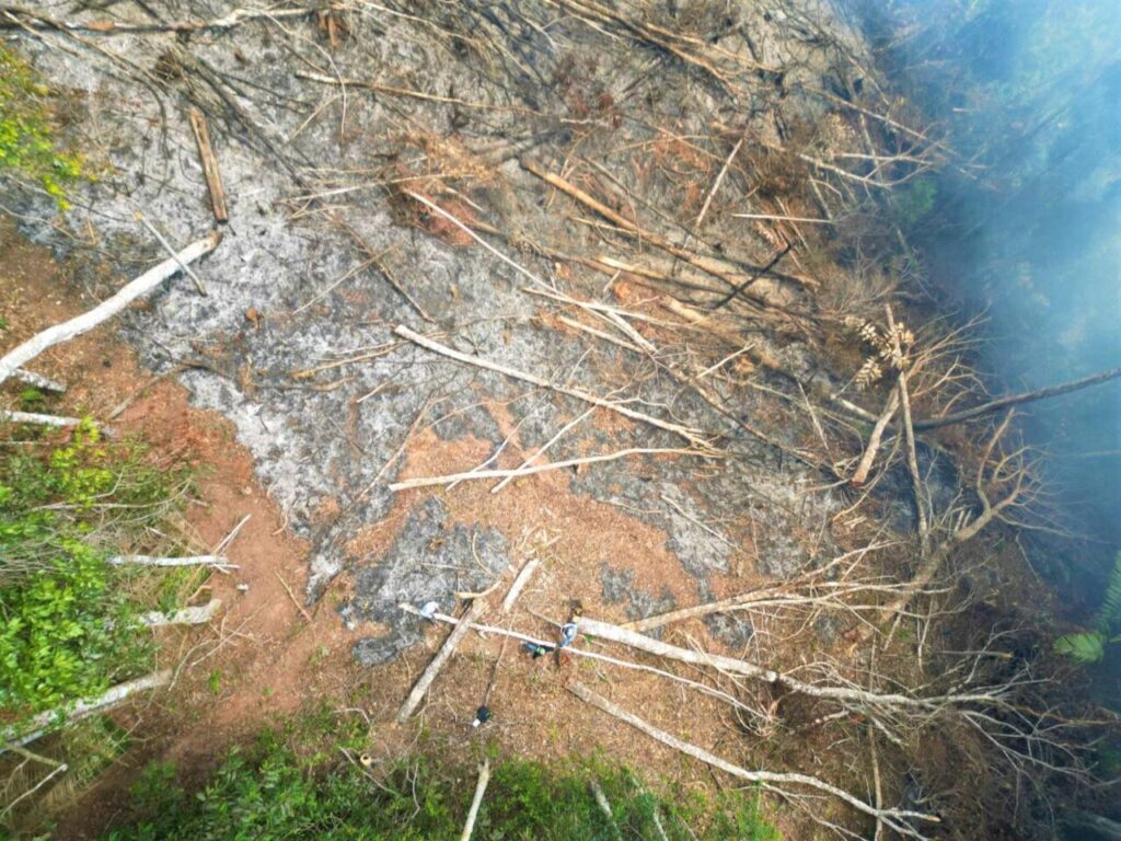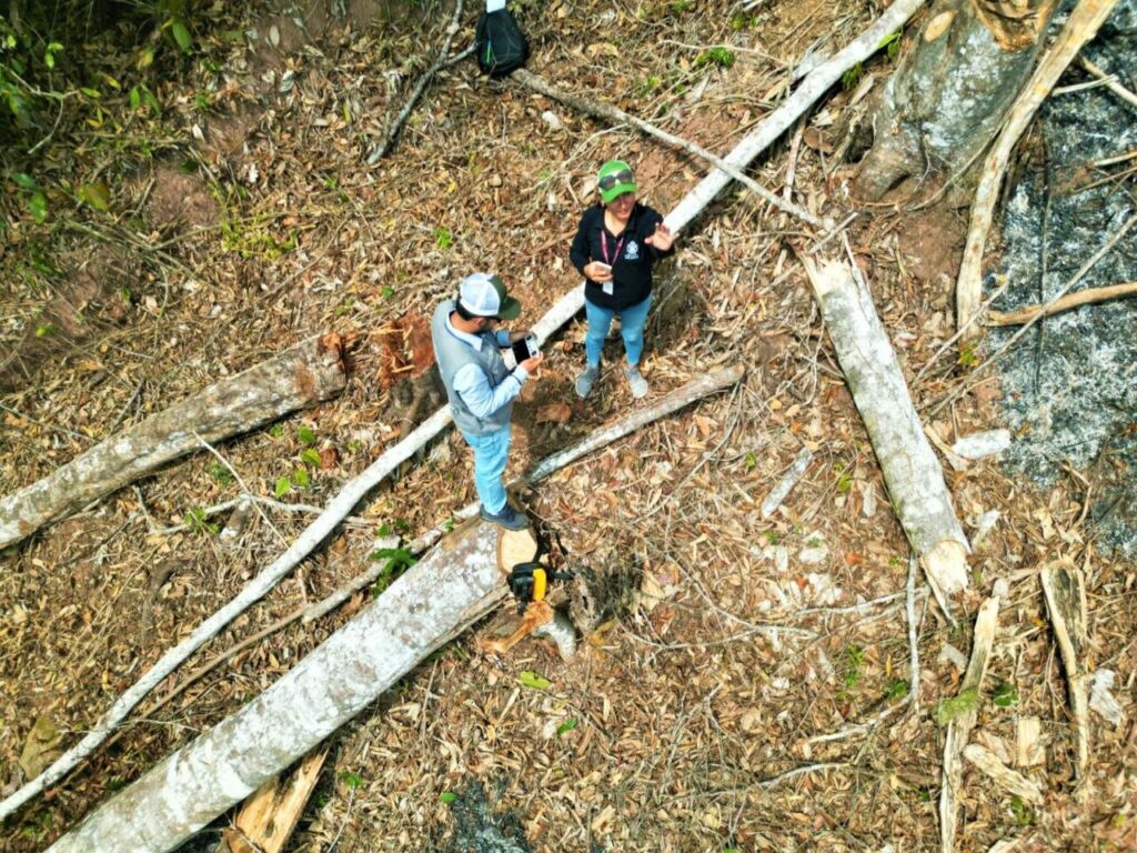 La zona afectada es de aproximadamente 02 hectáreas, en el cual se pudo evidenciar árboles talados de la especie cumala, leche caspi, etc. Además, por las características del área colindante y los árboles que se encuentran alrededor se trataría de un bosque primario.