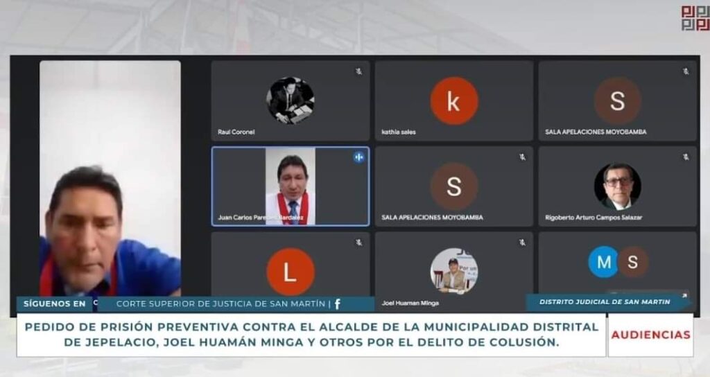 La Sala Penal de Apelaciones Moyobamba llevó a cabo la audiencia de apelación de prisión preventiva para Joel Huamán, alcalde del distrito de Jepelacio