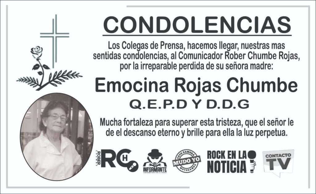 Con profundo pesar, expresamos nuestras condolencias por el sensible fallecimiento de la señora Emocina Rojas Chumbe. Mujer valiente y de espíritu inquebrantable, luchó con dignidad hasta su último día. Fue una madre ejemplar, entregada plenamente al amor y bienestar de sus hijos y familiares. Su calidad humana también se reflejó en la comunidad: siempre solidaria, […]