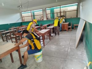 Los trabajos ejecutados estuvieron orientados a dejar en óptimas condiciones la institución ante el próximo inicio del año escolar, programado para el 15 de marzo. Las labores incluyeron limpieza general de aulas, lijado de sillas y mesas, retiro de desmontes, mantenimiento de ventanas y arcos metálicos, entre otras acciones.