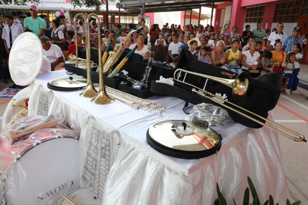 La obra, también considera 16 aulas pedagógicas, ambientes administrativos, salas de biblioteca, laboratorio y comedor con su respectivo equipamiento, losa multiuso con cobertura metálica, mobiliario para estudiantes y docentes, instrumentos de banda de música; cuenta con portadas de ingreso, cerco perimétrico para garantizar la seguridad del local escolar, entre otros importantes componentes.
