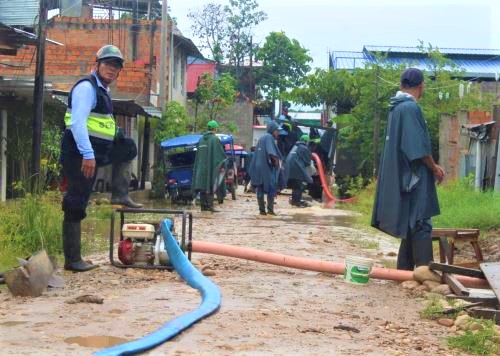 - En el distrito de Morales, la crecida del río Cumbaza y las inundaciones han perjudicado a los vecinos, particularmente en el jirón Manco Cápac, donde es imposible circular debido a las aguas.
