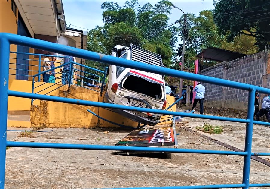 Un vehículo station wagon de color blanco, terminó empotrado en una pendiente, luego que el conductor dejó por olvido sin colocar el freno de mano, mientras descansaba en conocido hospedaje ubicado en la prolongación del Jr. Libertad en el sector Huastilla, cerca de una casa de citas.